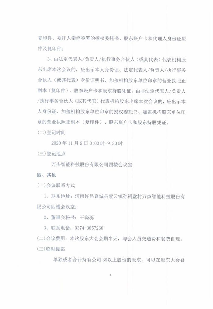 萬杰智能關(guān)于召開2019年年度股東大會的通知公告
